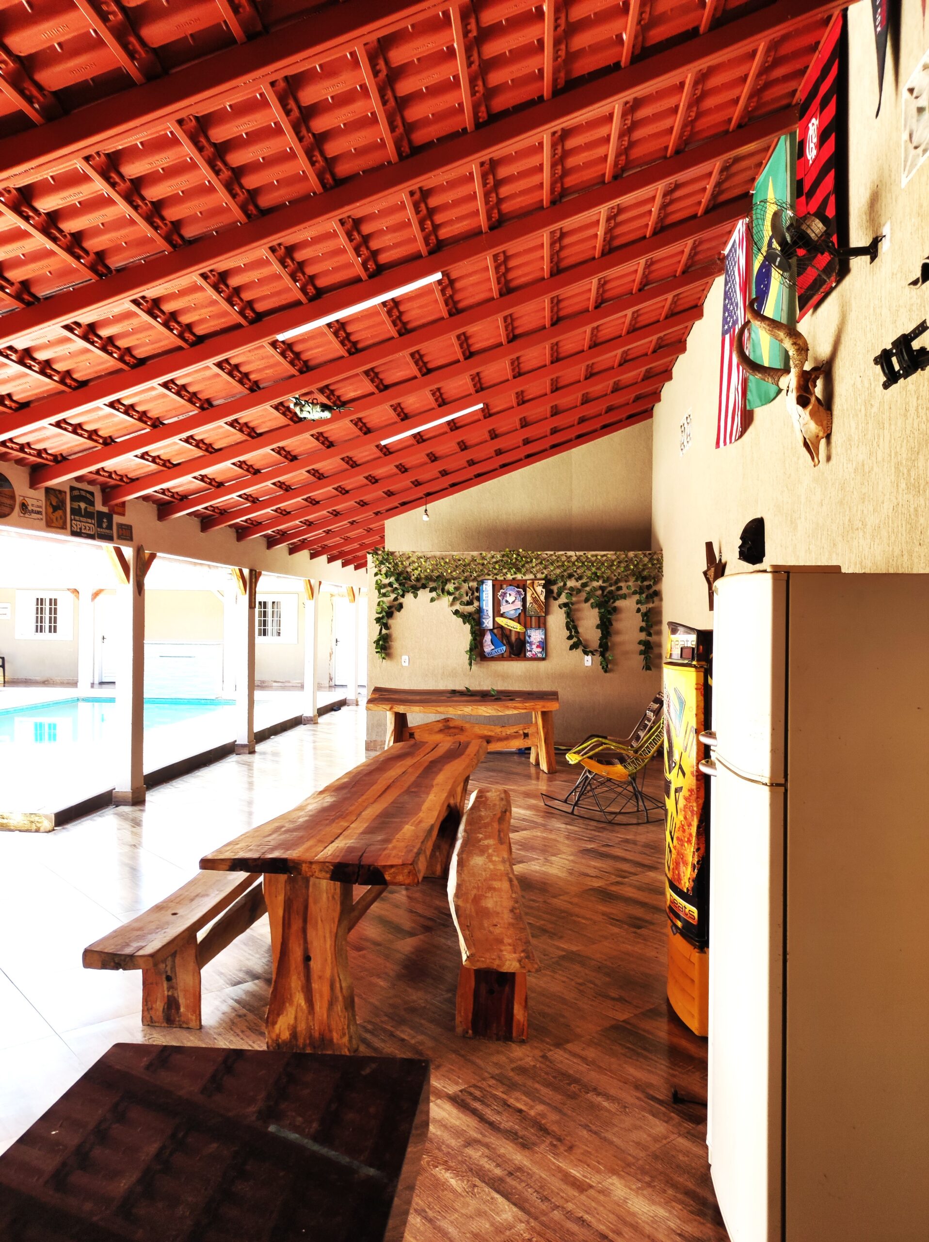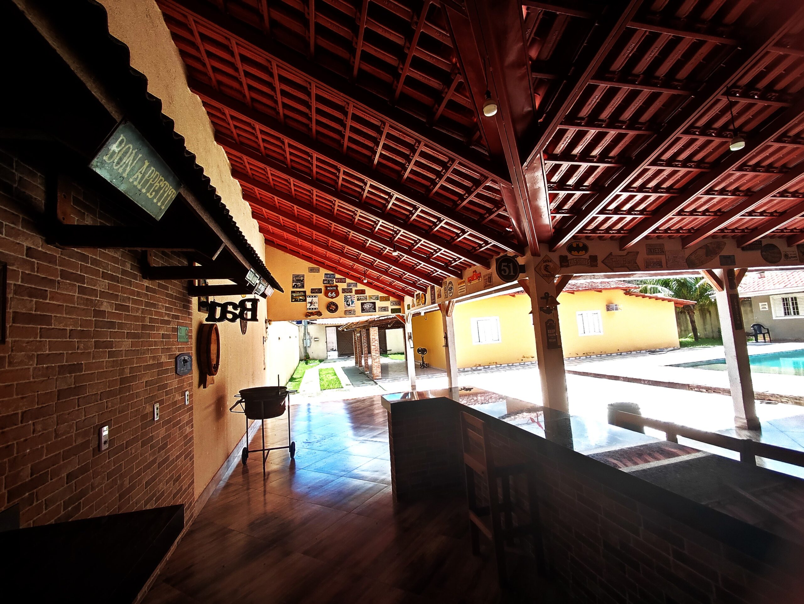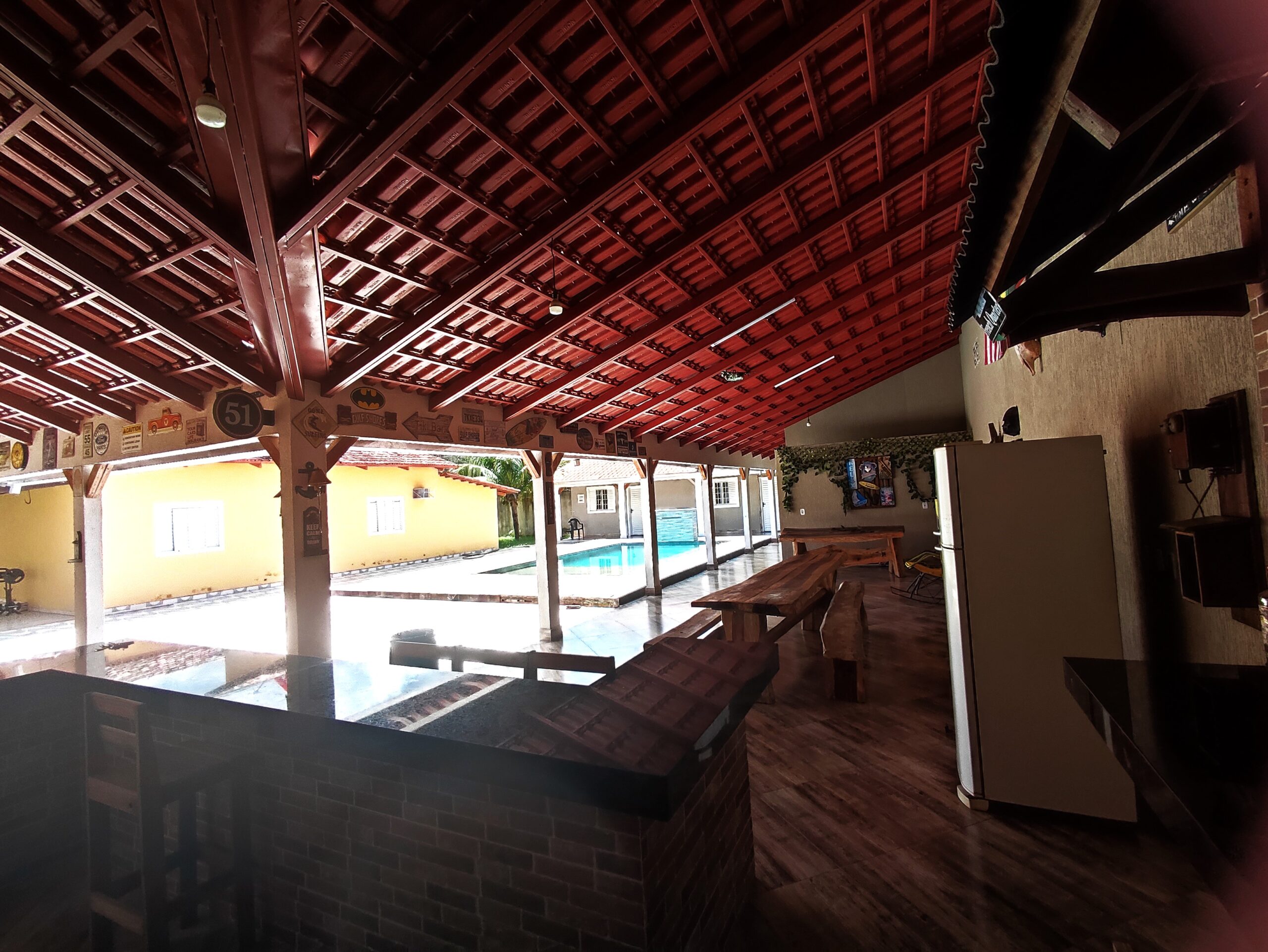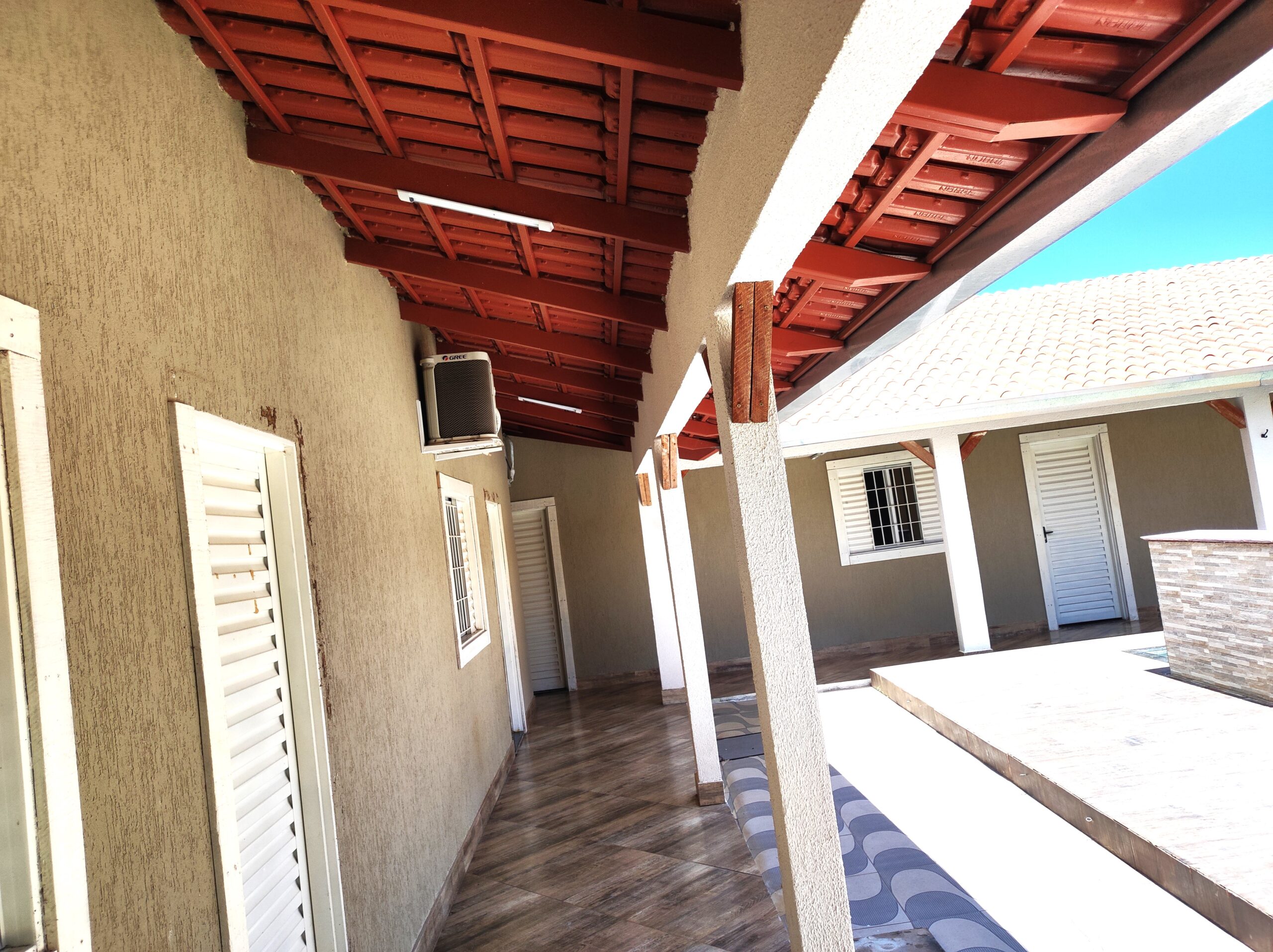 Imóvel de boa qualidade de 04 suites, todos com ar condicionado,  contendo 04 camas de casal e 04 camas de solteiro box, 01 colchão extra de casal, todos com ar condiconado, banheiros social M / F, piscina, cervejeira, geladeira, amplo espaço de lazer, portão eletrônico, localizada a 3.500 m da praça central de eventos, com capacidade para 18 pessoas.